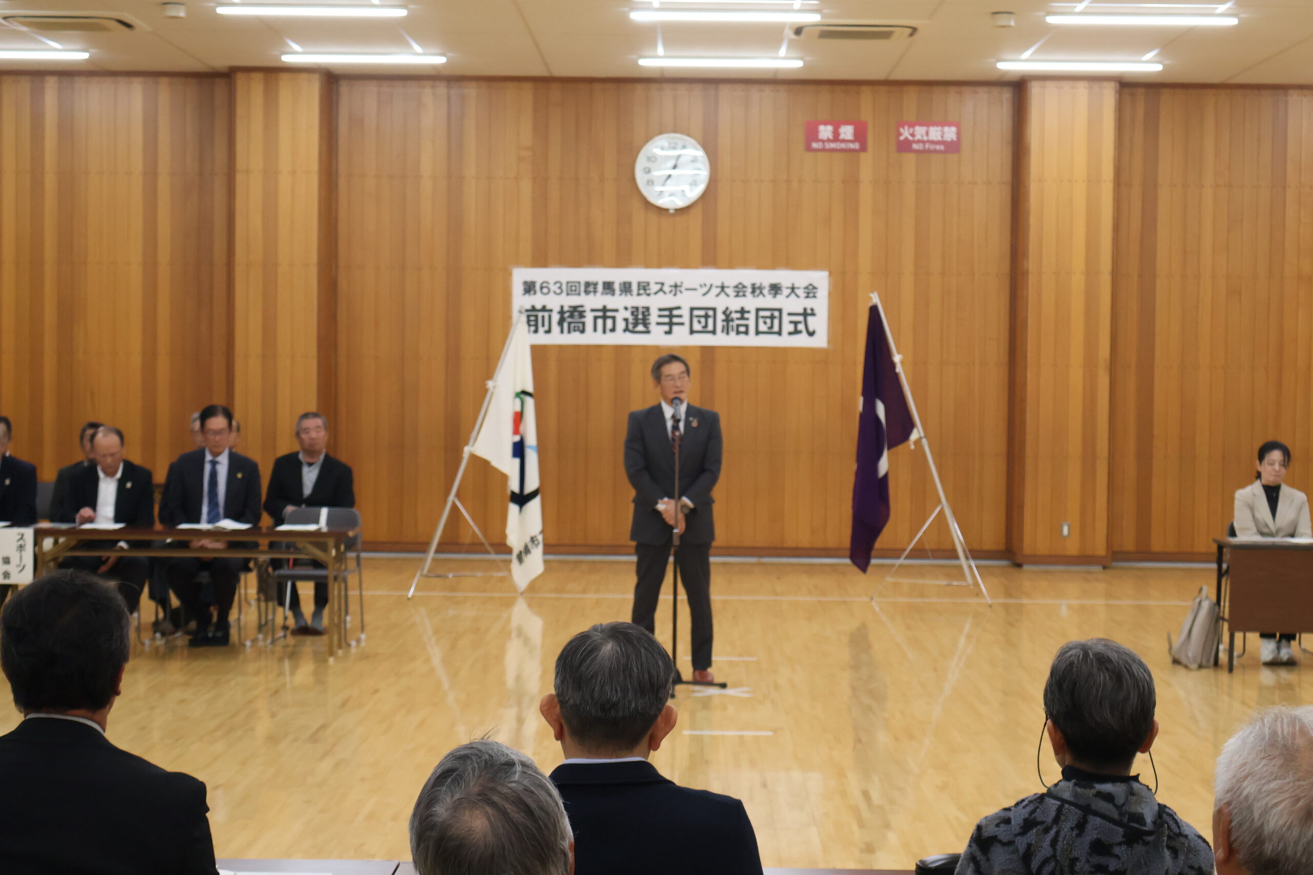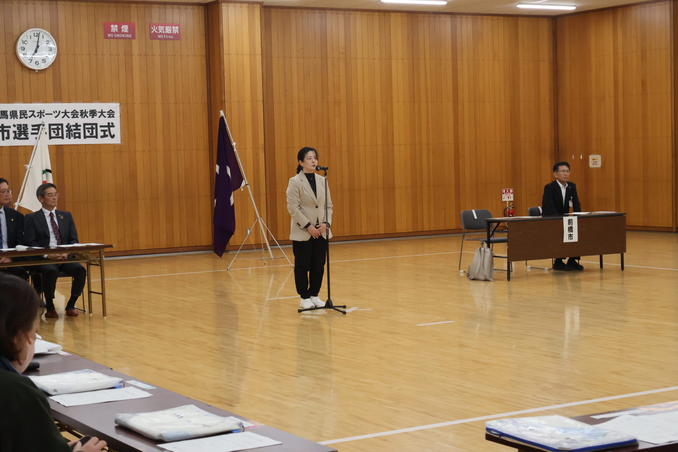 10月29日(水)、ヤマト市民体育館前橋において、前橋市選手団結団式を行い、猪俣理恵 前橋市副市長や菅原 宏 前橋市選手団団長(スポーツ協会会長)からエールをいただきました。